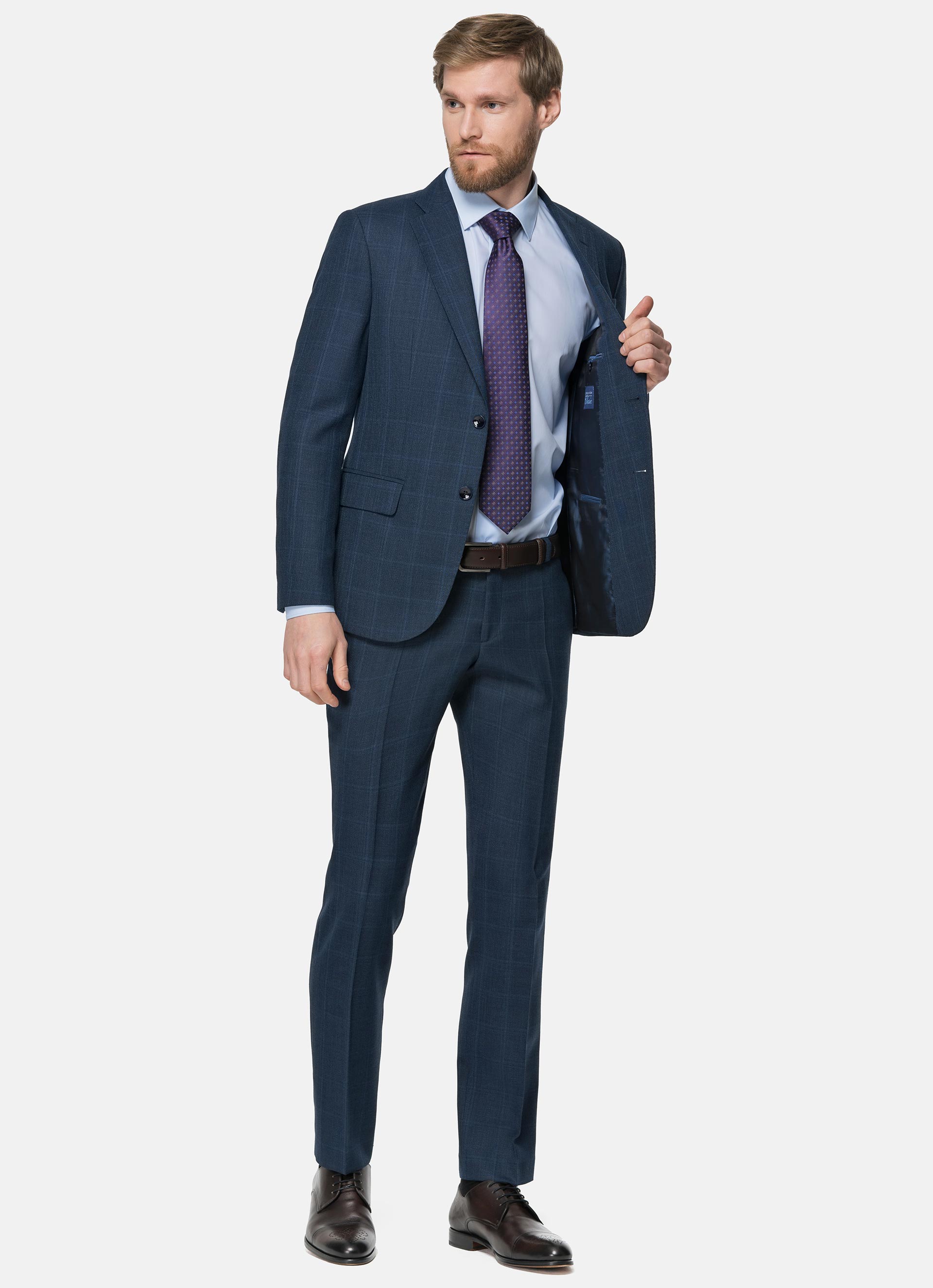 Тёмно-синий мужской костюм в голубую клетку Travel Truvor